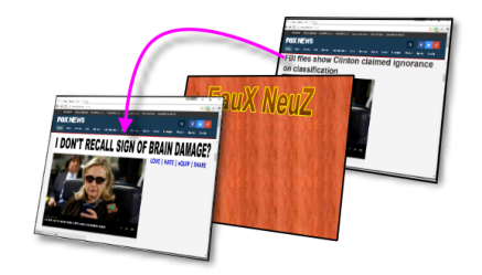 Sick of not being able to find “true” unbias news? Fake News? Realize that the current news and media outlets are polarized, but want unfiltered, non-spun news? Others provide lies through Fake News. FAUX NEUZ is the solution. FAUX NEUZ’s patented (US and International Patent Pending) process provides a unique news experience. Stop wasting your browsing time, the brainwashing, the lies, and try honest “Veneer Free News” from FAUX NEUZ.FAUX NEUZ? FAUX NEUZ is a FREE online service that allows users to alter the titles of news stories from a wide variety of sources, including CNN, Fox News, MSNBC, The Wall Street Journel, The NY Post, Yahoo News, USA Today, TMZ, and hundred of others.* In addition to changing titles, users can also rate other’s alternate titles, view most and least popular titles, and share their titles with others. Please watch the YOUTUBE video below to see an overview of FAUX NEUZ.To streamline the experience, FAUX NEUZ can be set to present alternate titles over existing websites, so they are automatically viewable when a member visits their favorite news or media website, as illustrated below. Or members can view stories from our website, or have FAUX NEUZ texted** or emailed** to their preferred device (phone, tablet, desktop, and etc.). FAUX NEUZ - The largest open socio-political experiment in the world. * FAUX NEUZ is not owned or affiliated with CNN, Fox News, MSNBC, The Wall Street Journel, The NY Post, Yahoo News, USA Today, TMZ, or any other media outlet mentioned herein. Additionally, FAUZ NEUZ only shares generic de-identified information with members, does not sell or share member identifiable information to external entities, and we do not have any relationship with any of these news and media outlets.